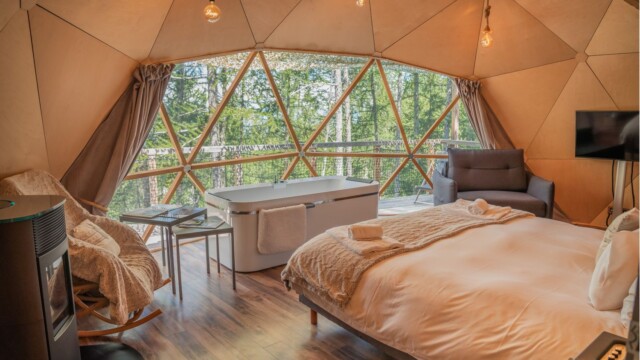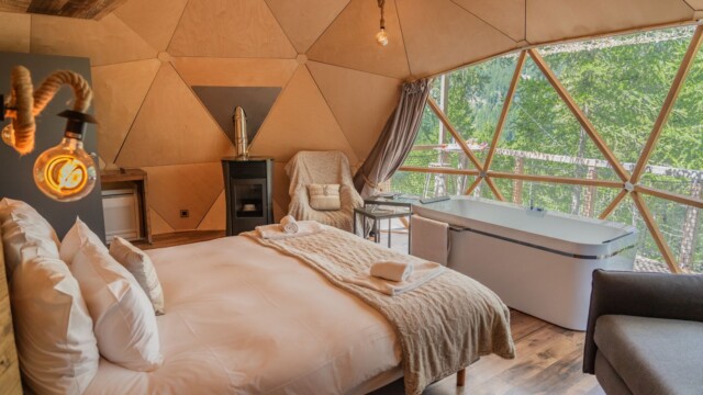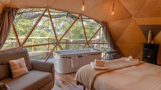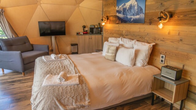 Le D’hôme Luxe est un véritable bijou d’Alpin D’hôme, alliant élégance, confort et respect de l’environnement. Avec ses finitions haut de gamme et ses grandes ouvertures, il offre des vues spectaculaires pour un séjour romantique ou en famille. Ce dôme innovant est équipé de toutes les commodités modernes, incluant un espace détente et un coin lecture, offrant un cadre idéal pour se déconnecter en pleine nature. Alliant glamour et durabilité, il crée une expérience d’évasion harmonieuse et immersive.
