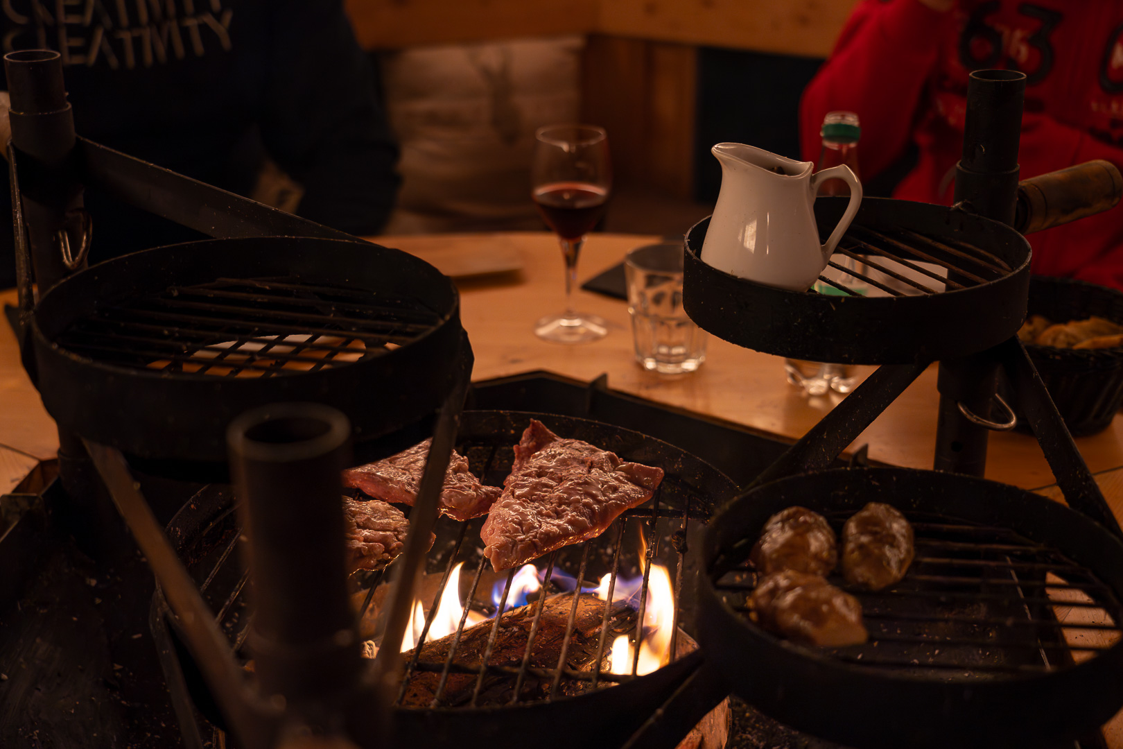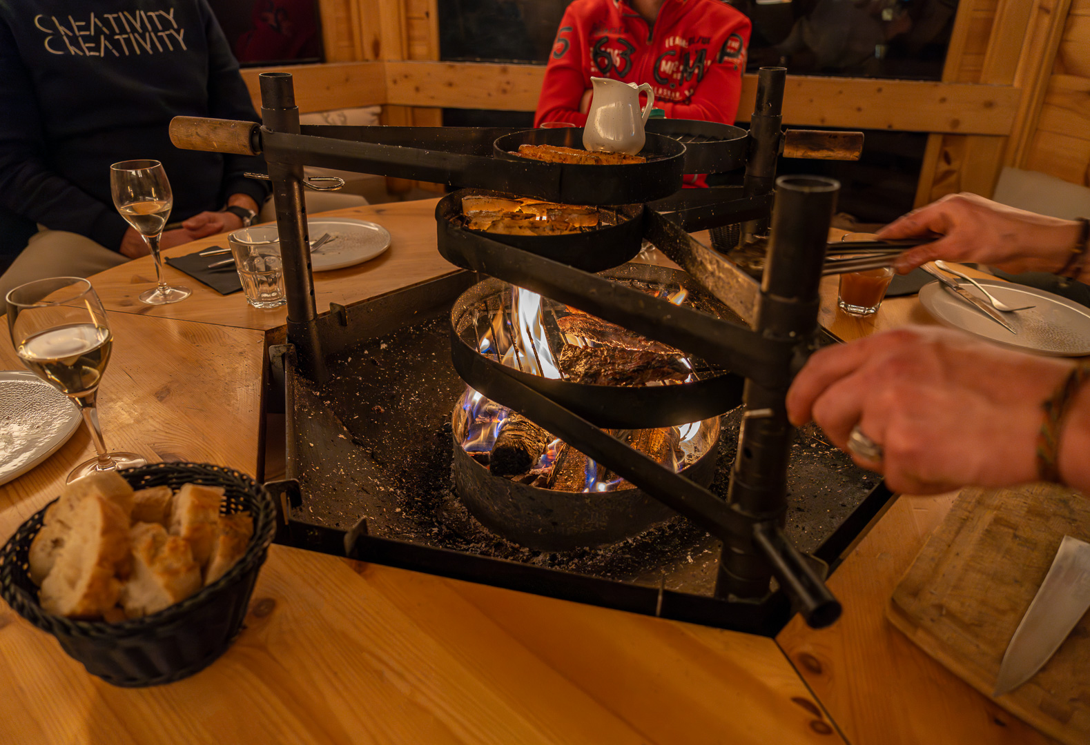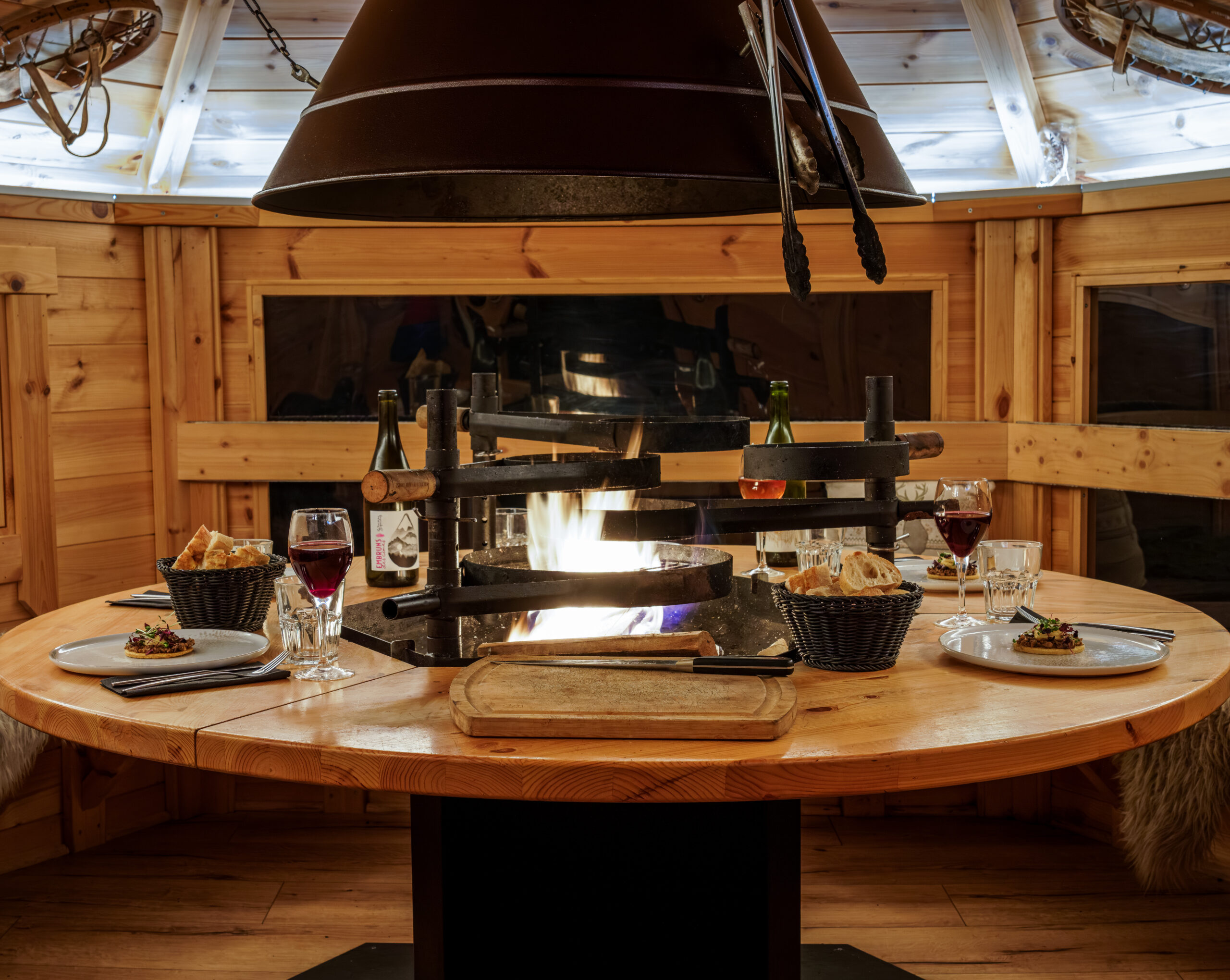 Le Kota-Grill est un espace exclusif et intimiste, parfait pour des soirées inoubliables autour de grillades savoureuses. Ouverte uniquement le soir en hiver, cette cabane finlandaise accueille jusqu’à 8 convives maximum dans un cadre convivial et chaleureux en 2 services (19h-20h45 et 21h-22h45). Ici, le Chef prépare chaque plat devant vous à la manière d’un Chef Robatayaki (style barbecue coréen), directement à votre table, pour une immersion totale dans l’art culinaire.